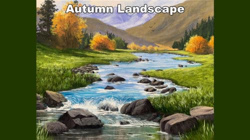 Learn to paint a beautiful autumn river landscape in acrylics with this on-demand online art lesson.