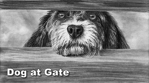 You’ll learn how to bring this expressive pup to life, with soulful eyes and beautifully rendered fur — all set against a rustic wooden fence and a softly sketched sky.