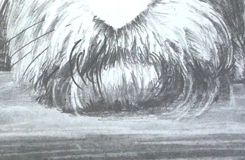 On other occasions I will use the eraser to lift out lighter hairs over darker hairs.