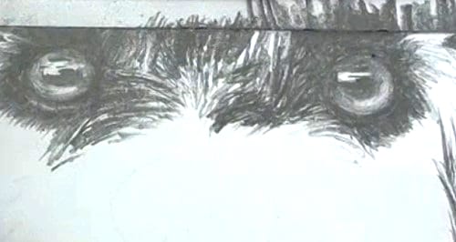 The area around the eyes is very important. It needs to be very dark to make the eyes stand out nicely, but you still need to work in the subtle details as well as stick to the correct hair directions, so pay careful attention when drawing this area.