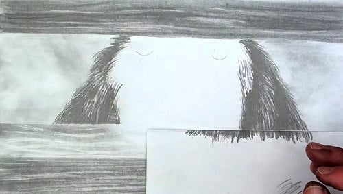 As the paper is white, we cannot draw the white hairs. We can only suggest them by drawing the negative space and darker hairs visible behind them.