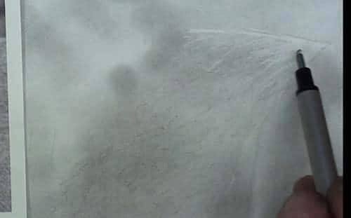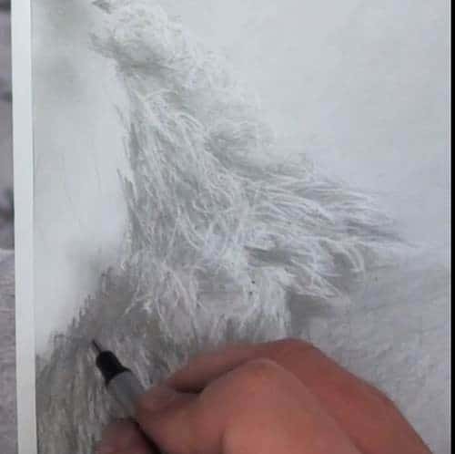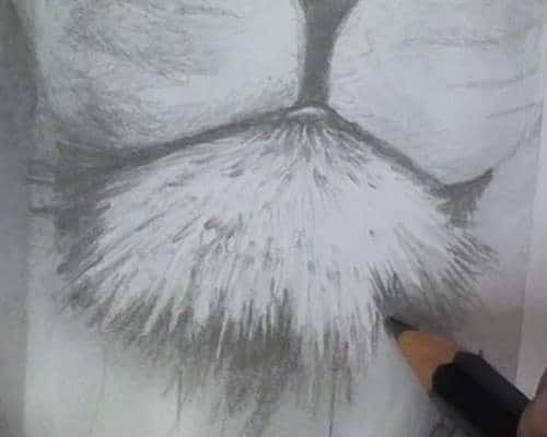 This multitude of short continuous stabbing strokes will simulate the short hairs on the face.