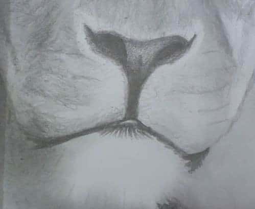 This step allows me to quickly get a feel for the drawing as I am able to picture the lion within a few minutes.
