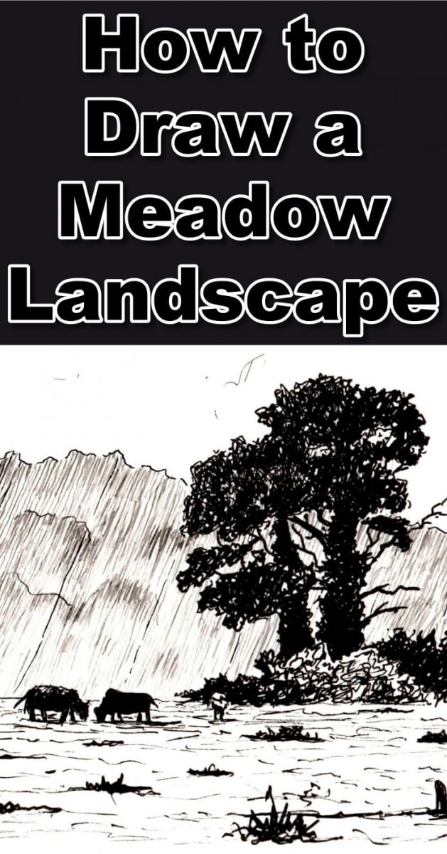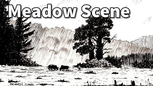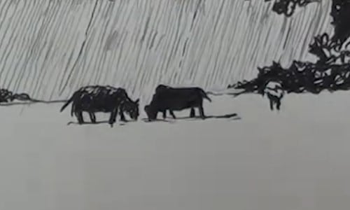 To make this a pastoral scene, use other reference photos to sketch some cows in silhouette. Notice how I have placed them. I have added three for compositional balance. Don't forget to add their cast shadows.