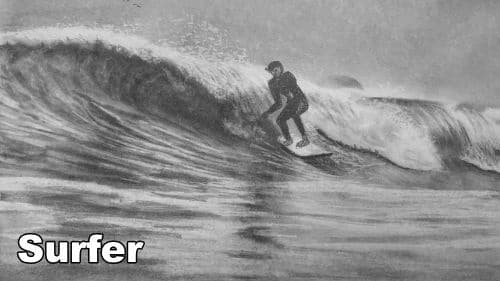Ride the creative wave in this real-time step-by-step pencil drawing class where you’ll learn how to draw a dynamic seascape featuring a surfer in action. This class is perfect for beginner to intermediate artists looking to improve their realism skills and tackle the exciting challenge of drawing moving water and human figures in motion.