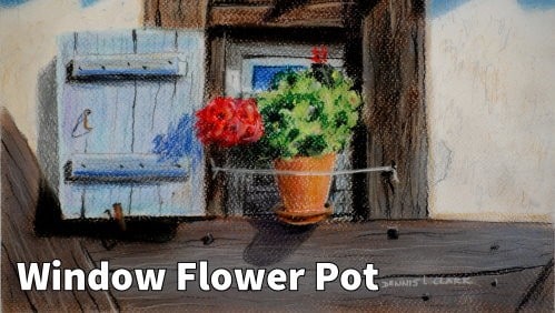 Celebrate rustic charm and creative composition in this warm and textured pastel class. In “Geraniums on a Window Sill,” we focus on an unusual and character-filled scene featuring a quaint pot of flowers framed by weathered wood and sun-washed walls.