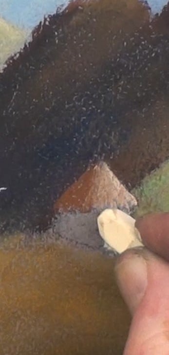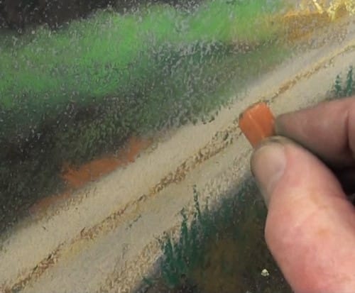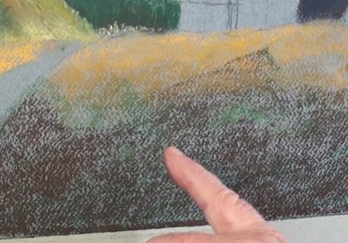 Don't draw on the pastel paper with a graphite pencil. The reason for this is that the graphite is slightly “oily” as well as leaving a smooth line where the pastel dust will not be able to grip on. This will always leave unsightly lines in your work.