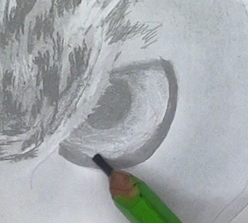 These feathers are quite fluffy so use your kneaded eraser to lift out the highlights in the feathers as this will give you a soft edge.