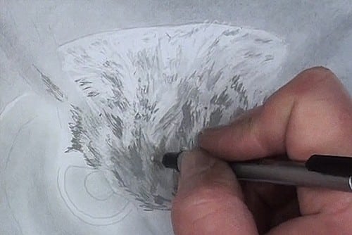 Areas that need to go lighter can be lightened using a kneaded eraser.