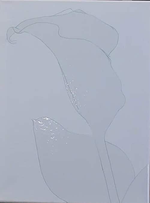 Use the lesson template to trace the flower onto the canvas. To keep it clean while you paint the background, use a masking of Clear Cover (or similar material) to protect it.