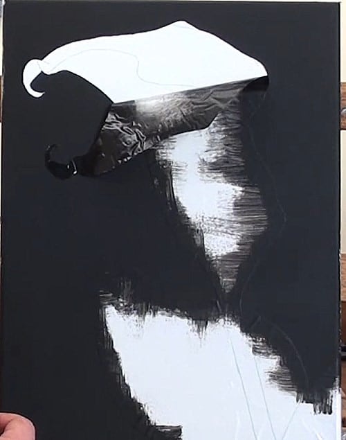 Opt for an acrylic paint to do the background so that it will dry quickly, with less likelihood of contaminating your flower colours. Once you have finished the background, carefully remove the mask from the flower.