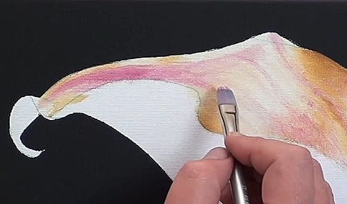 Use a clean brush and yellow paint to accentuate the sunlit area at the base of the flower, again using the dry brush method.