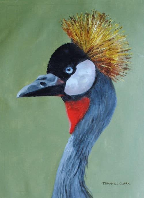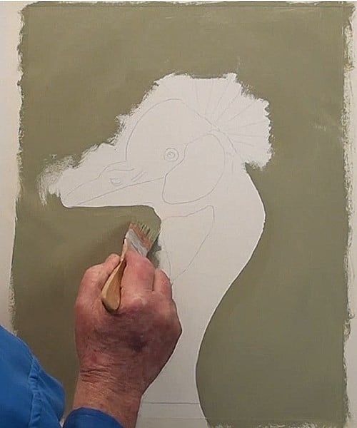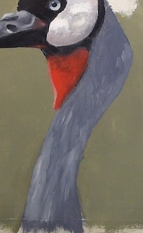 Block in the neck with a middle tone Grey. Be careful in not going too far out of the neck area, as this will make the neck too thick. The inset here is of a different Crane because it shows off the neck feathers better than my photo does. Notice the crown color reflected onto the neck.
