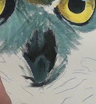 The beak is painted with the dark mix, with a touch of white for the lighter areas.