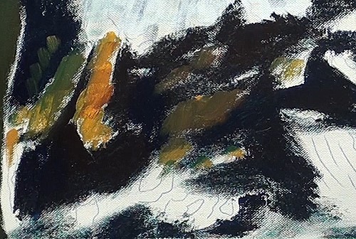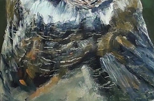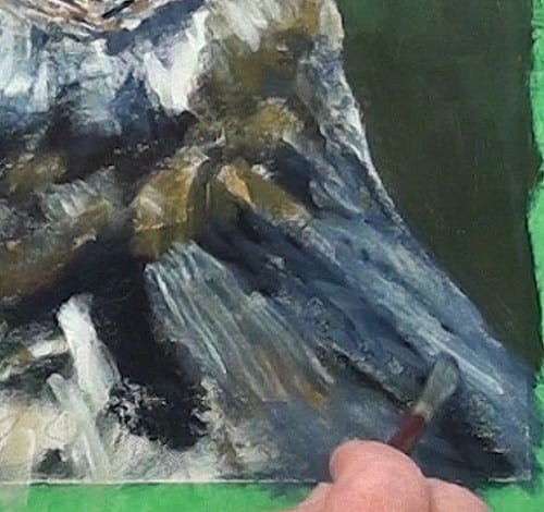 Now we can add the lighter areas. I guess you have already noticed that we are not keeping to exactly the same colors as in the photograph. We are matching it to the the reflection from the dark green background. All your brush work in the painting will be small strokes to match the feathers and markings.