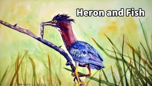 Paint the beak being very careful not to cover the light areas. Paint portion of the neck and the paint the darks of the fish. Add the light Burnt Sienna and then Cobalt Blue for the sky reflection.