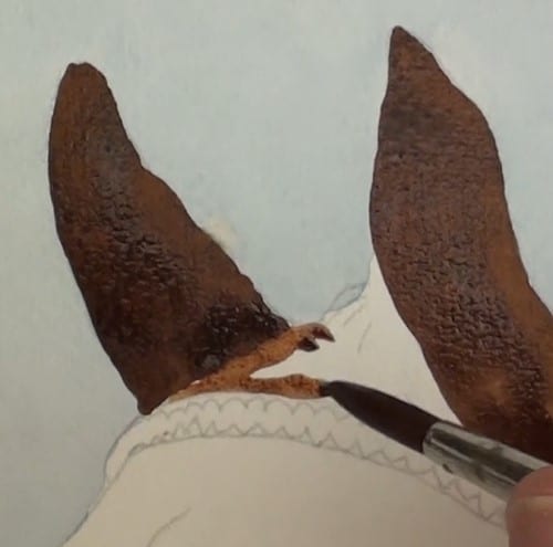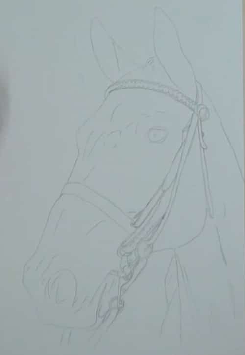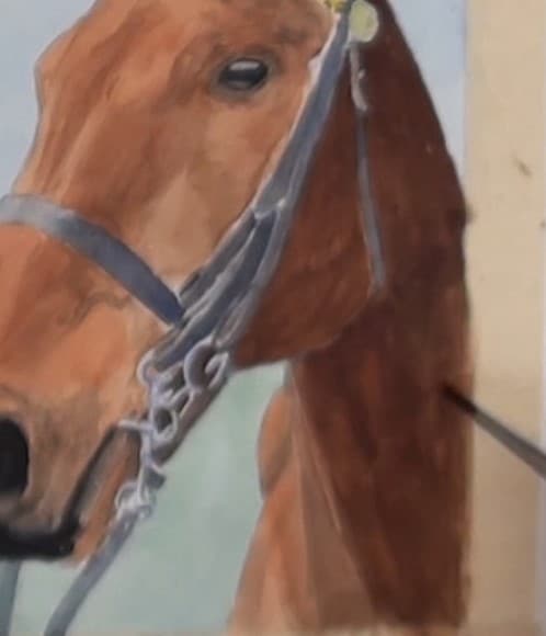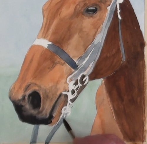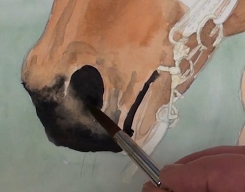 Add the shading under the chin area. Use a small round brush near the bridle.