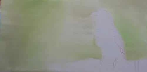 Now lets start adding colour to the background I am going to use sap green and cadium yellow to get the green shadings. Pick up tiny amounts of paint on the brush at a time and work it into the white. Then add more to darken.