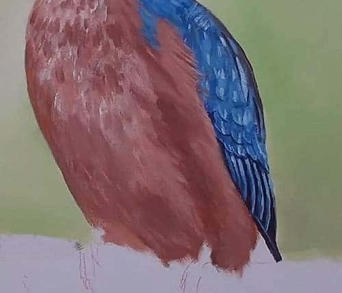 On the far left I add some raw umber. Keep all the shadings smooth to ensure the background looks out of focus. Dry the background so we can move to the kingfisher.