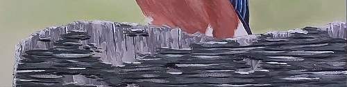 Before we can paint the bird's feet, we will need to paint the fence. The fence is quite old and weathered so parts of the wood are chipping away already. We can see that this plank of wood has two layers. We will paint the back layer first.