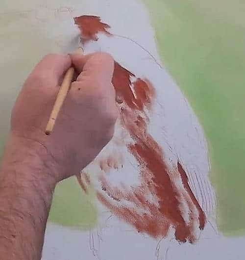 For the body we use burnt sienna and plot in the dark areas.