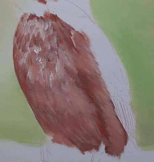 Now go two to three shades lighter again and add this tonal value in and so on. When you do this use a chopping motion. By the time you have added all the tonal values in the body will be completed and all the canvas will be covered in paint.