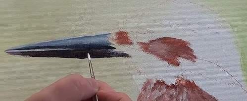 For the beak use paynes grey then add white and french ultramarine for the top of the beak. The tip has a touch of purple added.