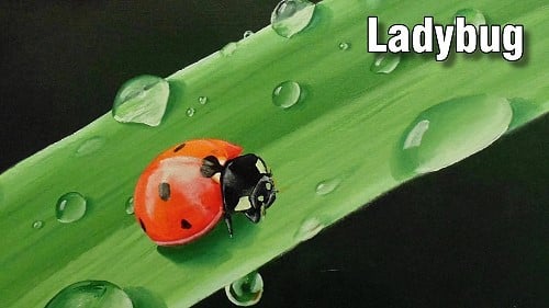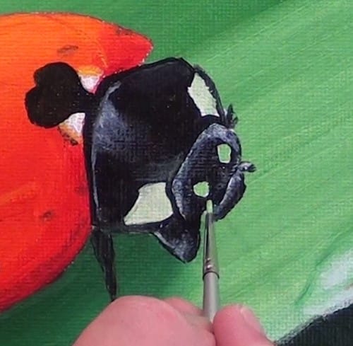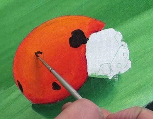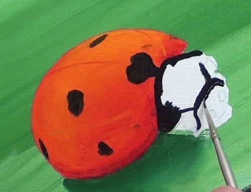 Paint the remainder of the head, being careful to get all the small details correctly placed. Conclude the ladybug by painting on the leg.