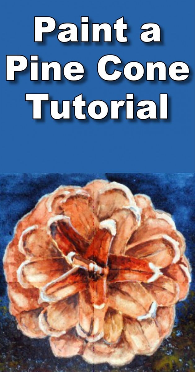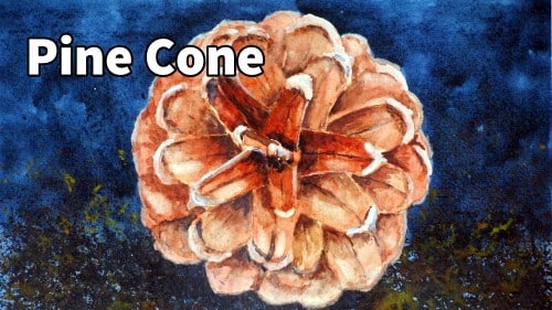 Mix up a very dark mix using Ultramarine Blue with some Burnt Sienna to make a Blue Black. Paint this all around the cone and making it slightly lighter in the foreground as the cone is lying on the ground.