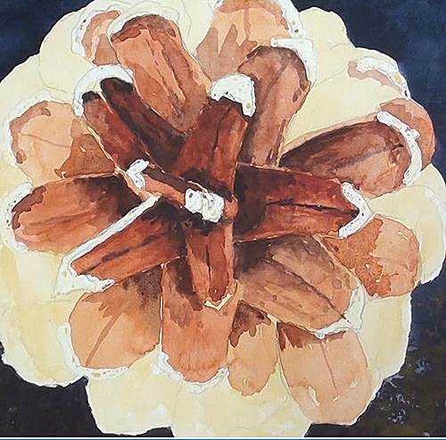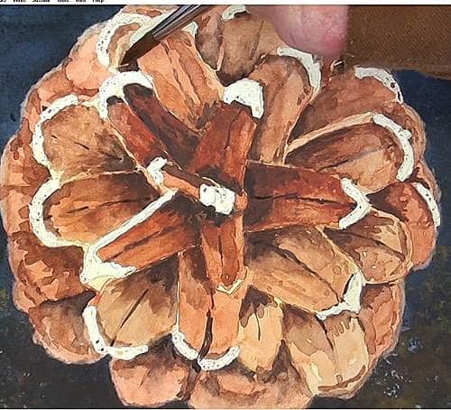 It is this play on the contrasts, the darks against the lights, that add to the drama of the cone's scales. As before, slowly and carefully build up the tonal ranges, as well as the details.
