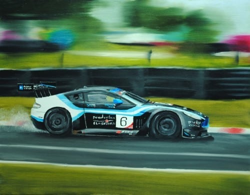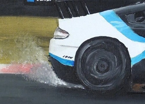 To create the illusion of smoke coming off the tyres it is best to wait until the background is dry and then glaze some white in that area.