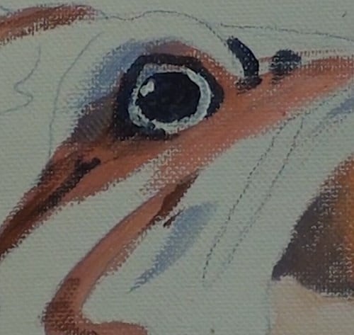I normally paint in the eye as soon as possible, because this is the focal point of any living creature.