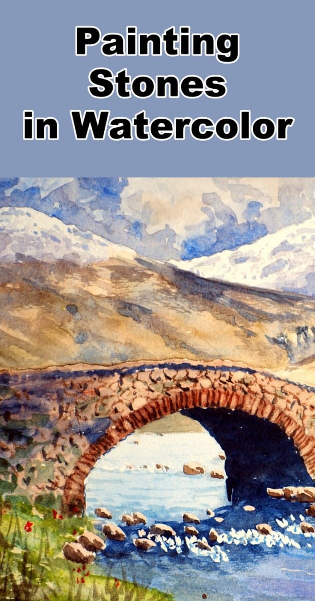 Now we can begin to show some detail on the banks. Remove the masking fluid over the rocks and paint in the shadow sides. Add in a few rocks in the distance and the flow marks in the water.