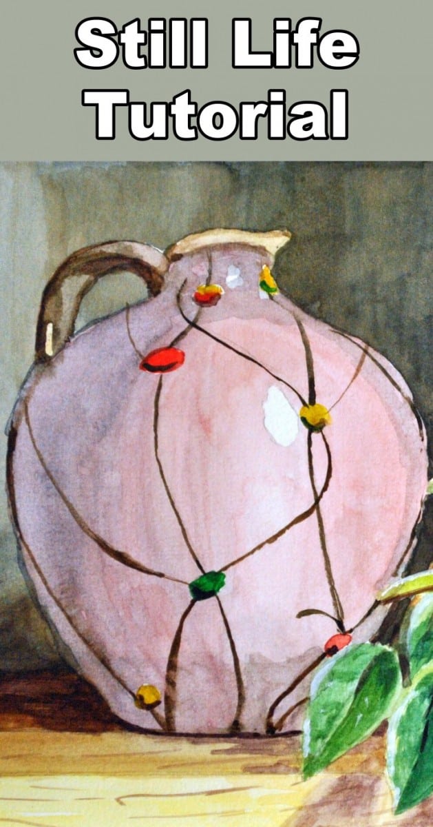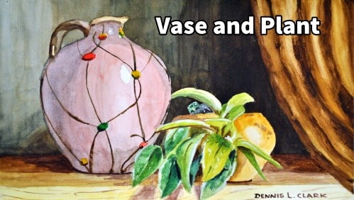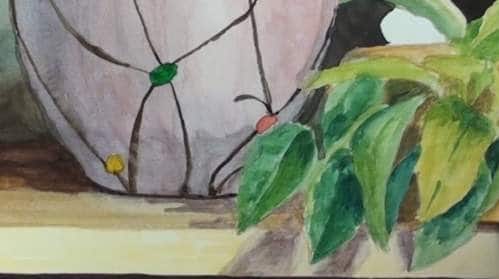 Deepen up the shadows under and to the side of the vase and pot. Do a few final touch-ups around the leaves.