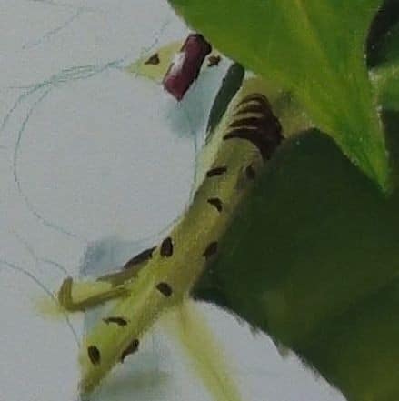 The outer edge of these leaves also curl back so I am careful to add that short sharp shading in as well.