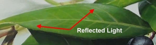 The leaves are smooth so many of them are reflecting the light. At this stage I am ignoring these reflections. It is easier to add them in later.