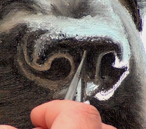 So in order to mix a realistic mid tone for your black haired animals, look for the subtle underlying colour in the hair and play that colour up. More often than not it is a brown colour.