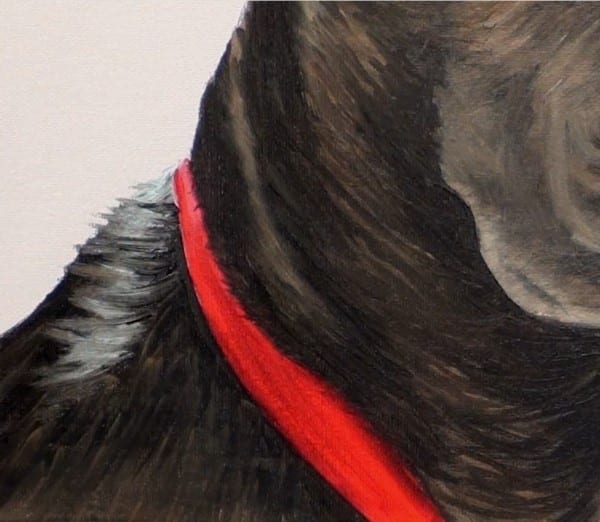In order to make it sit naturally on the dog I did however use a soft Filbert brush to carefully had a few overlapping hairs over the collar.