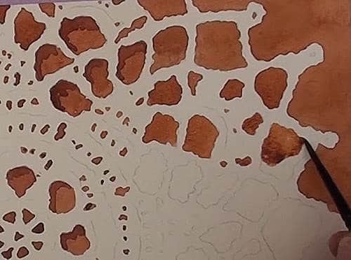Take one section or pattern and keep there until finished, or almost finished, as I am doing here. Do that for the rest of the painting.