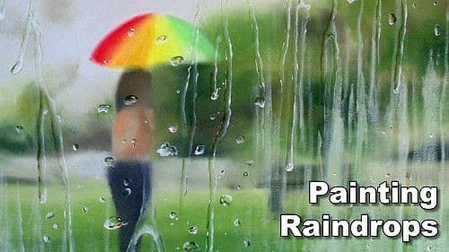 What makes this painting interesting is the fact that we are looking at the water drops and not what is in the background. We then need to create the illusion that the background is out of focus.