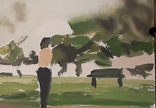 Although I know we are looking at trees, a figure and an umbrella I am not going to try to paint any of those. I'm simply going to paint the abstract shapes caused by these objects.