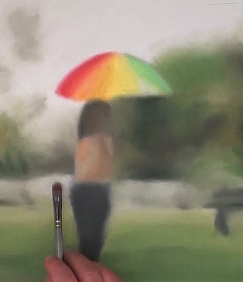 I also very carefully soften the edges around the silhouette of the umbrella in order to make it look out of focus.
