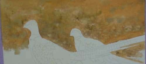 We have to beef up the birds shadows because dark colours lighten when they dry out. Under the body must be the darkest shadows. Add a few more darker areas in the lower area to finish up the painting.