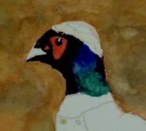 Use Ultramarine Blue and Viridian for the neck feathers. Keep the colours bright.