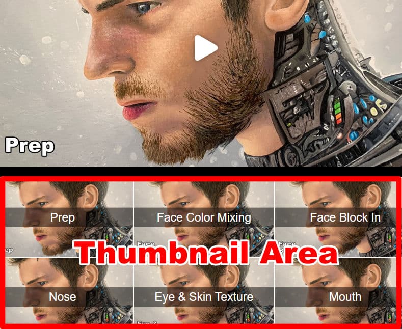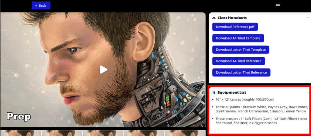 For example there could be a video showing you how to prepare your canvas for the lesson, then another showing how to paint the background, another showing how to paint the focal point and so on...