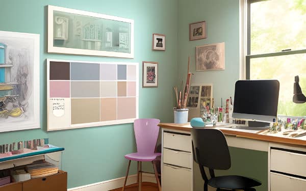 If you only have a part of the kitchen table as a studio, you can still do your best to make it welcoming and energising. Choose water containers you love; funky brush holders and a bright drop cloth to work on. Sometimes a small plant can make all the difference.