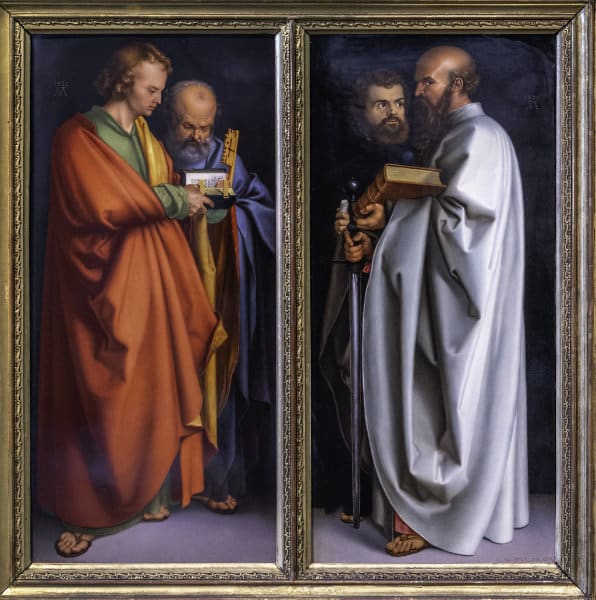 His final oil paintings were completed in 1526. His last great masterpiece was the “Four Apostles”, two painted panels that he presented as a gift to the Nuremberg City Council.