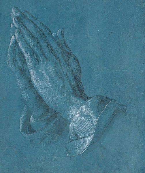 One of Durer’s most recognisable works is “Praying Hands”, an ink drawing on blue paper created as a study for an altarpiece that was later destroyed by fire. The drawing has become an international symbol of devotion and is one of the most reproduced images of all time.