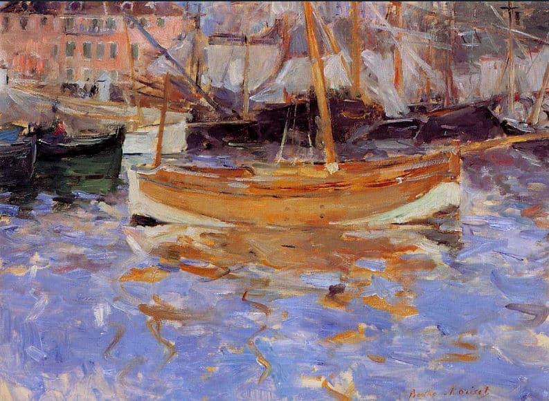 This is evident from paintings such as Berthe Morisot’s ‘The Harbour at Nice’ from 1881-82. In this work, Morisot uses short, loose brushstrokes to layer up contrasting colours in her painting. This has the effect of lending the colours greater vibrancy. The brightness of her palette and the way she plays with the reflections on the water create a bold scene that brings to life the energy of a harbour at midday. This painting foretells the colour affects to come in the works of Seurat and Van Gogh.