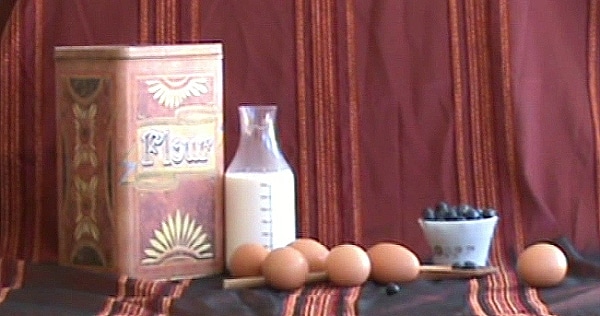 My favourite place to find objects for a still life is the kitchen as all the objects already compliment each other. For this tutorial a flour tin caught my eye and I discovered a tub of blueberries in the fridge, so the subject for my still life became "Making blueberry muffins". (You can see I did this tutorial just before lunch.)